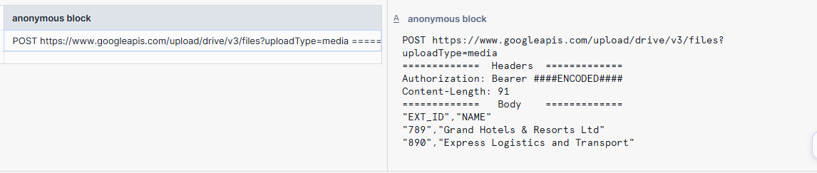 Execute the following SQL statements to preview the content of the upload request: