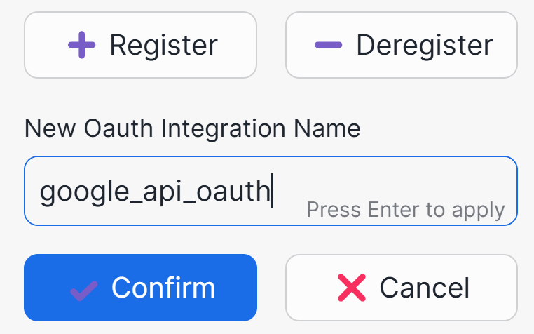 Name: google_oauth_token Secreet Type: OAuth2 Refresh Token: <Refresh Token> OAuth Allowed Scopes: https://www.googleapis.com/auth/drive https://www.googleapis.com/auth/calendar OAuth API Integration: google_oauthTip